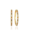 925 prabos sidabro auskarai, dengti 750 prabos auksu ir inkrustuoti briaunotais, įvairiaspalviais, AAA klasės cirkoniais.
